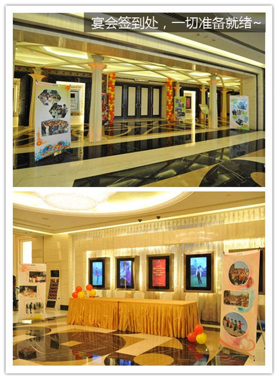 晚会开始前,签到处的场景,一切都已准备就绪,灯光、气球、照片,一切都洋溢着幸福的喜悦!