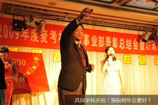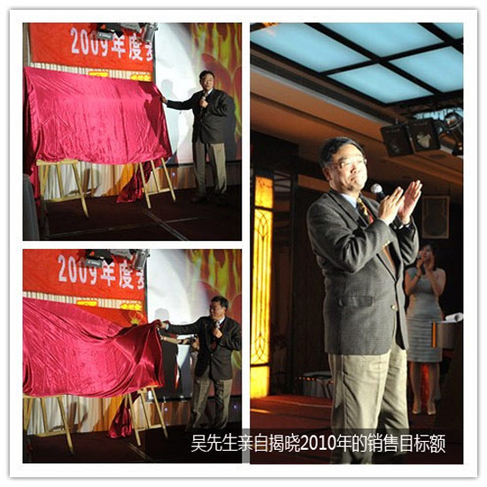 “谢谢大家09年做出的努力,取得如此好的成绩,感谢大家!感谢每一位伙伴!当然,也绝不能忘了感谢客户,是客户对我们的信任和支持,才会购买我们的产品,让我们09年打了漂亮的一仗!”吴先生在台上声情并茂的说着。