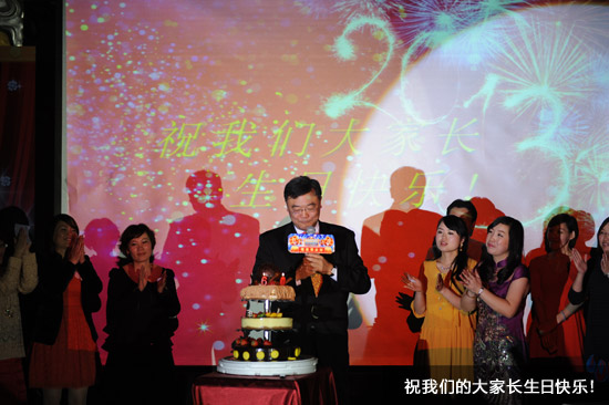 放下手中的酒杯后,在各部门领导一曲《我相信》之后,我们为大家长吴先生献上了生日蛋糕,当蛋糕推上台的时候,每一位伙伴都饱含热泪,就连吴先生也为之动容,依稀记得,吴先生发表生日感言的时候情不自禁落泪,感谢有这样的大家庭让我们感受到温暖,给我们大的归属感,这美丽的生日蛋糕不仅是献给吴先生这位不离不弃带领大家的家长,也是给我们这一年最好的肯定,最温馨的嘉奖!让我们心中充满爱,一起坚定地走下去吧!