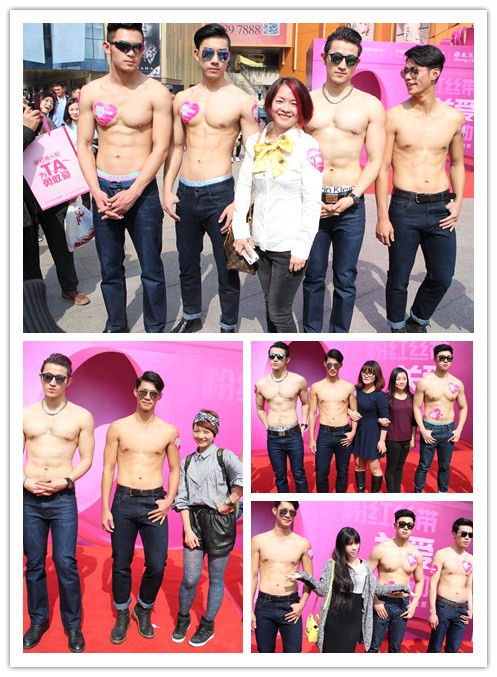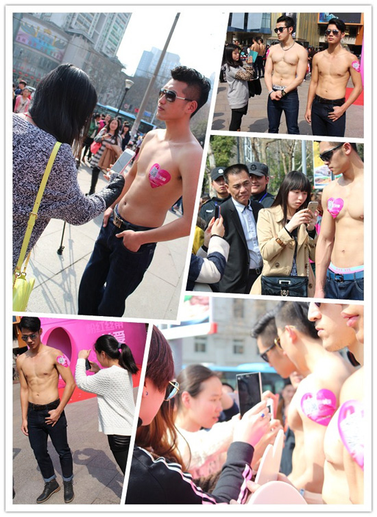 这些身上附有二维码的“小鲜肉”们走到市民身边,邀请市民扫码领取关爱女性健康的礼包,市民们在领取礼品之余,也不忘与养眼的男模们合影留念。
