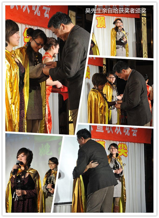 现在,到了颁奖最终的环节了,颁奖嘉宾自然也要是重量级的任务咯!麦考林健康事业部(HBD)的大家长吴先生!颁发的是2009年度销售额突破100万大奖…