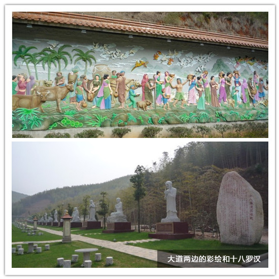 大觉寺壮观的大门上书“佛光祖庭大觉寺”七个大字,进了大门回头再看,上面却是“回头是岸”四字,顿时令人别有一番感触。走向观音殿的路上也有风景,一边是石刻的十八罗汉,神态各有千秋;一边是彩绘佛陀行画图,描绘了佛陀的生平故事。