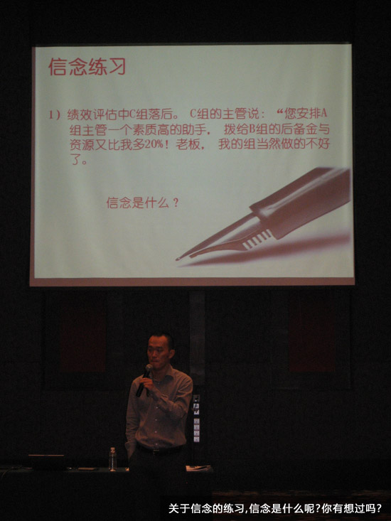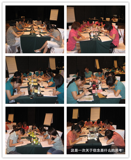 动完身子骨,伙伴们又要回到座位上进行下一轮的理论培训咯,一开始,老师就拿出来一道极具思考意义的大题来让伙伴们思考,那就是关于一场与信念的对话!想想什么是信念,信念对于你的意义,你的信念又是怎样的?