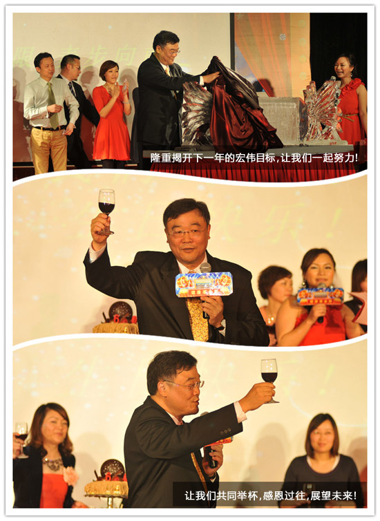 2012年,是用汗水与泪水夹杂的蜕变过程,这是属于每一位健康事业部人的荣耀,这是建立在一次次与客户真诚沟通上的!有了这一年的辉煌,我们不忘下一年继续创造奇迹,在一轮又一轮的掌声中,吴先生带领大家一起揭开下一年的目标,举杯共襄盛举!