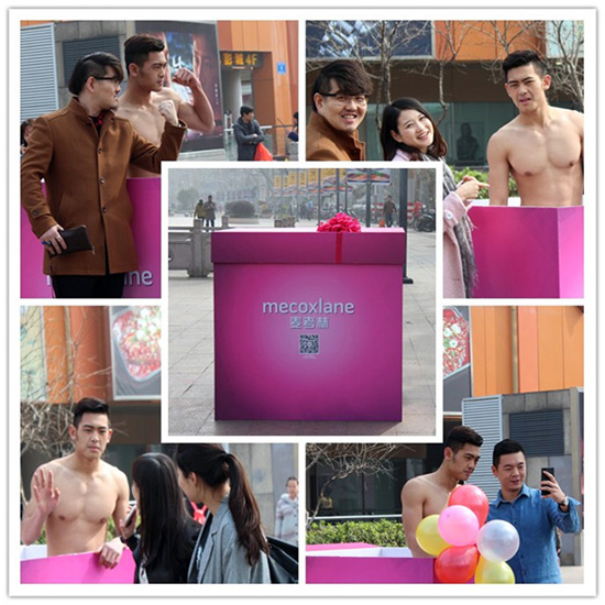 3月21日 中午,南京水游城一个巨大、神秘的粉红礼盒吸引了过往行人的注目。半裸上身的男神,就如同是天赐的礼物般给行人们一个大大的惊喜,纷纷上前合影扫码,活动预热成功,正式进入倒计时阶段…