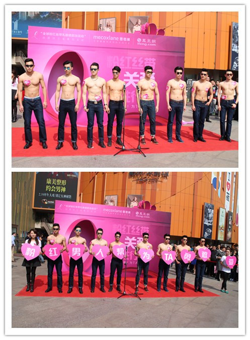 麦考林积极投身“粉红丝带”活动,在传递爱心的同时,也呼吁更多的男性朋友一起来关爱身边的女性。“裸露”不再是女性的专利,男人也应该以实际行动来支持这项充满意义的公益活动。因此,在3月21日,麦考林携手凤凰网在南京发起“粉红男人帮,为TA勇敢爱”行动。其中,8位“裸身男神”吸引全场目光,活动别开生面,意义非凡,取得圆满成功。